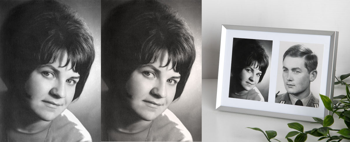 Der Kunde hat dann die Möglichkeit zu entscheiden, ob das restaurierte Foto im Ursprungslook eingefärbt werden soll, oder in einer anderen Farbe nach Wahl oder Vorlage.
