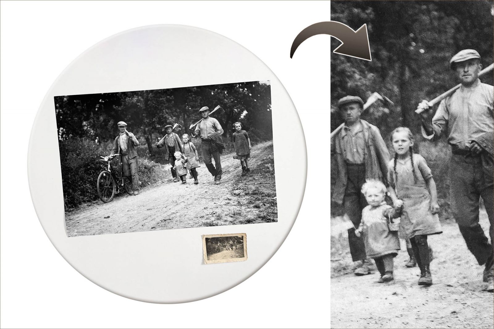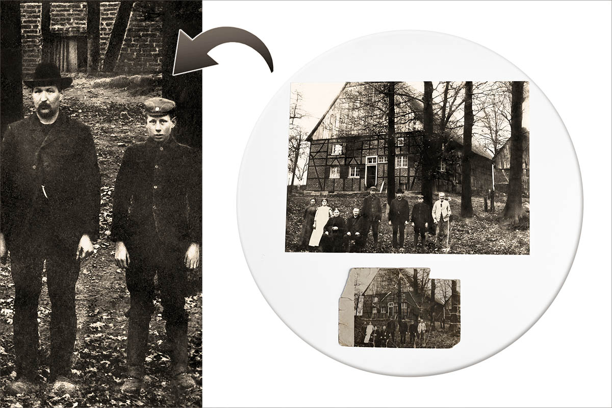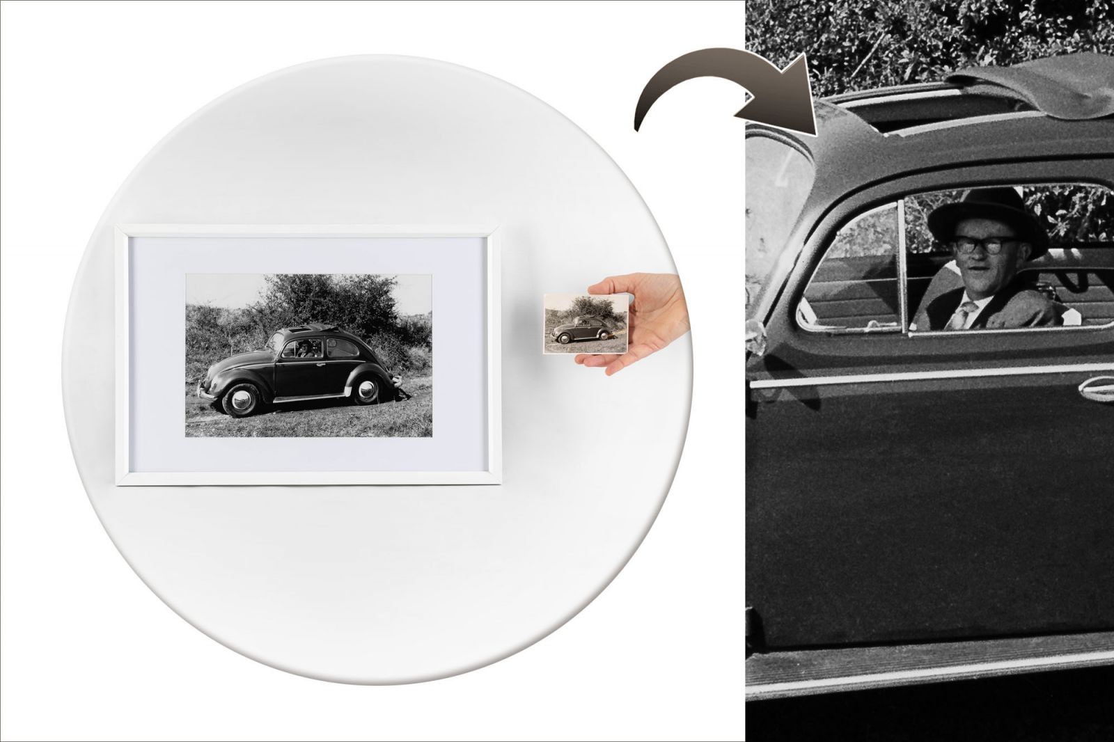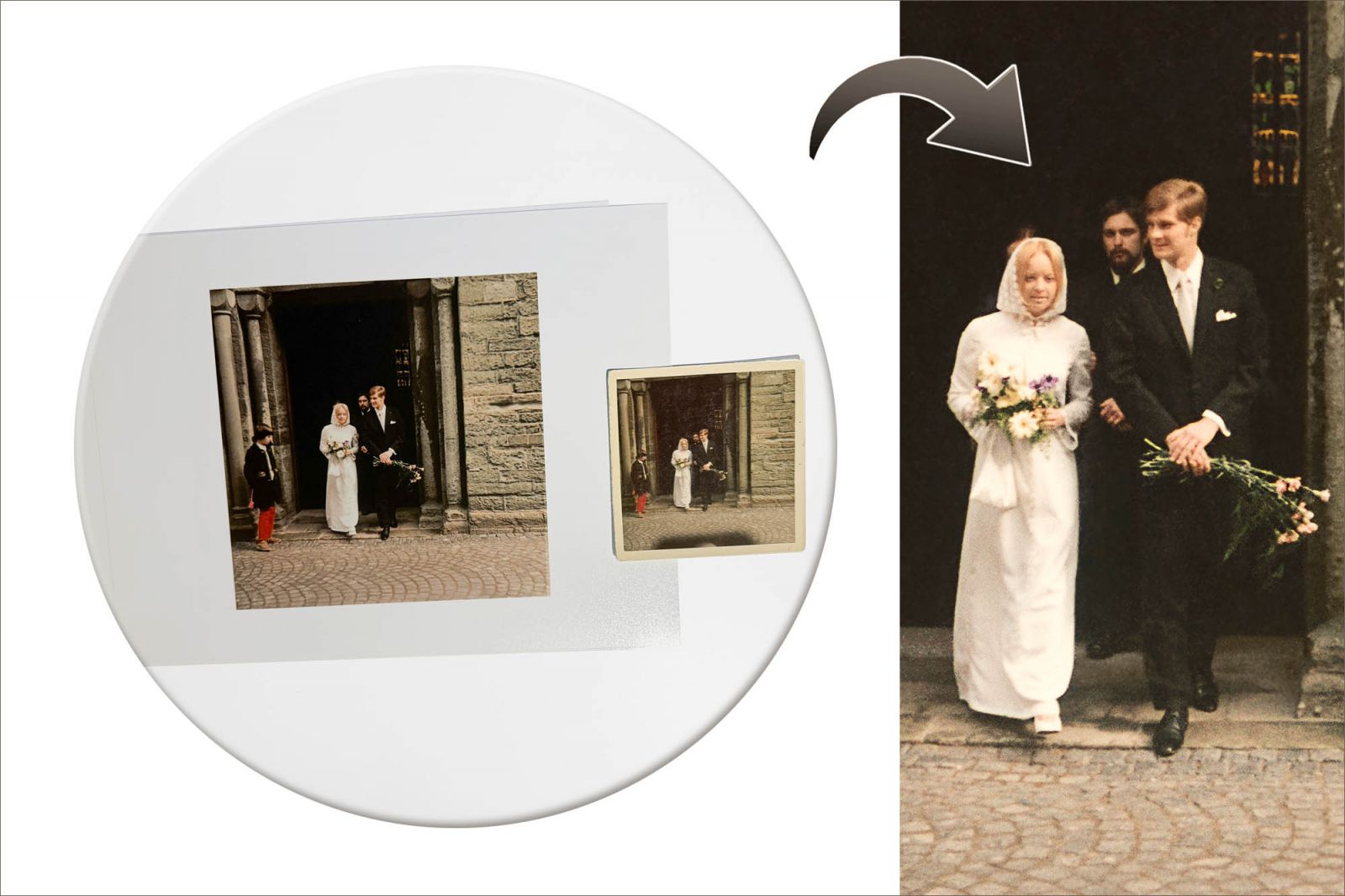 Mit Hilfe der Reprofotografie und diversen Optimierungsschritten können sehr kleine Fotos um ein Vielfaches vergrößert und gedruckt werden.
