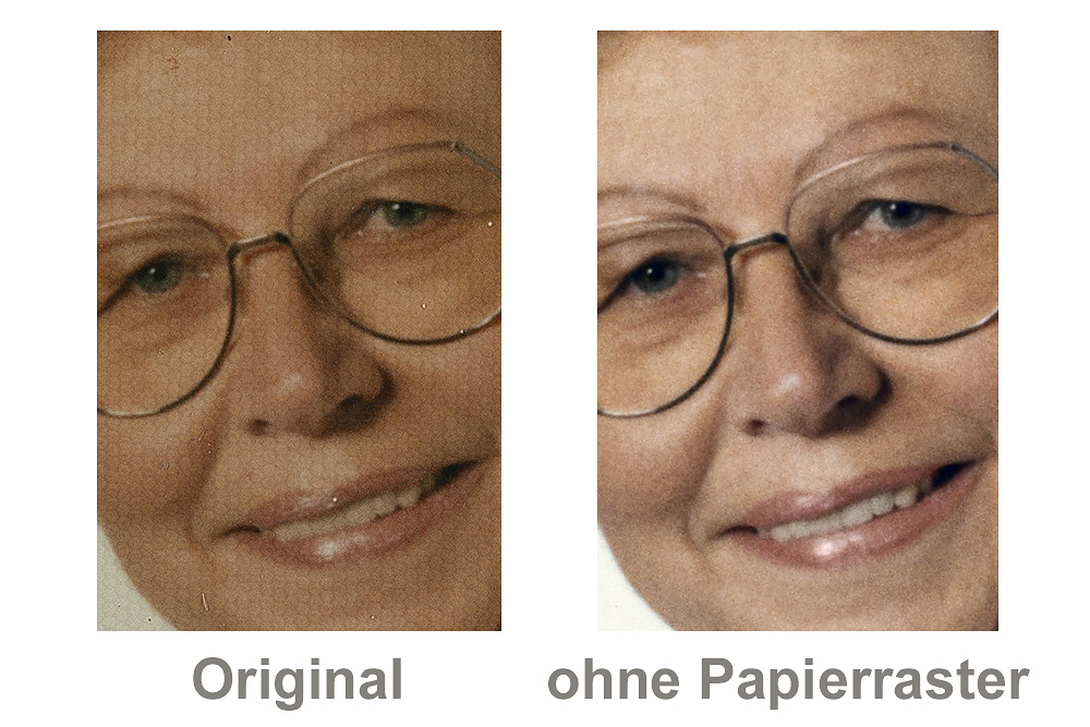 Das Endergebnis ist stets abhängig vom (UV-) Beschädigungsgrad sowie von den erhalten gebliebenen Bildinformationen. Bei zu starken Beschädigungen ist eine Fotokoloration möglich (s.u.).