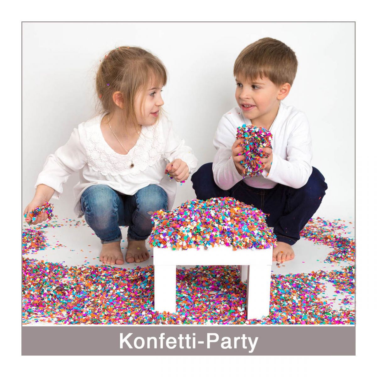 Jede Menge Konfetti im Fotostudio. Da wird es bunt!!! Lustige und authentische Fotos entstehen mit Geschwister oder Freunden „so ganz nebenbei“!